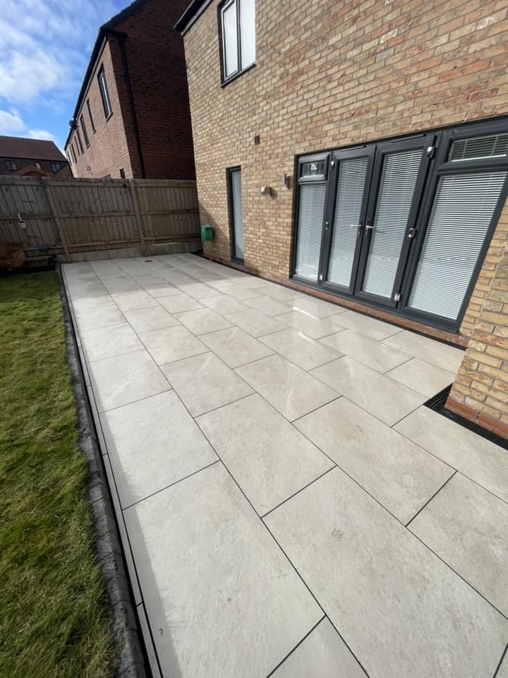 Bespoke patios including porcelain/sandstone paving. and brickwork.