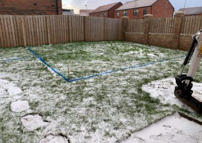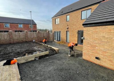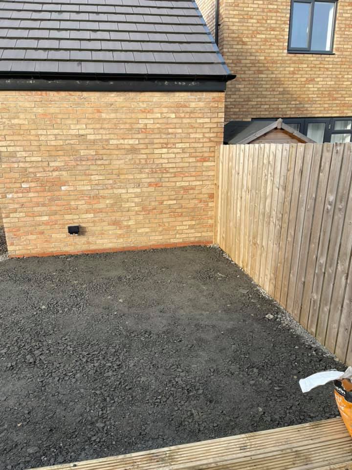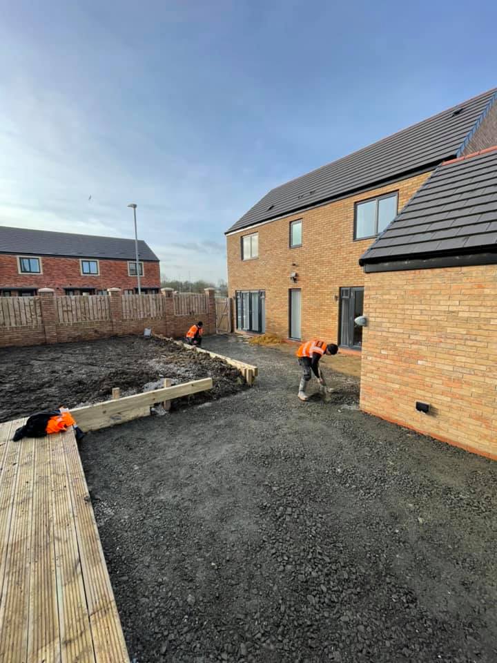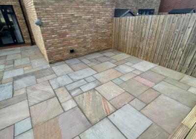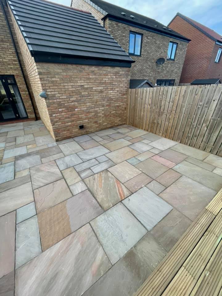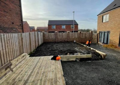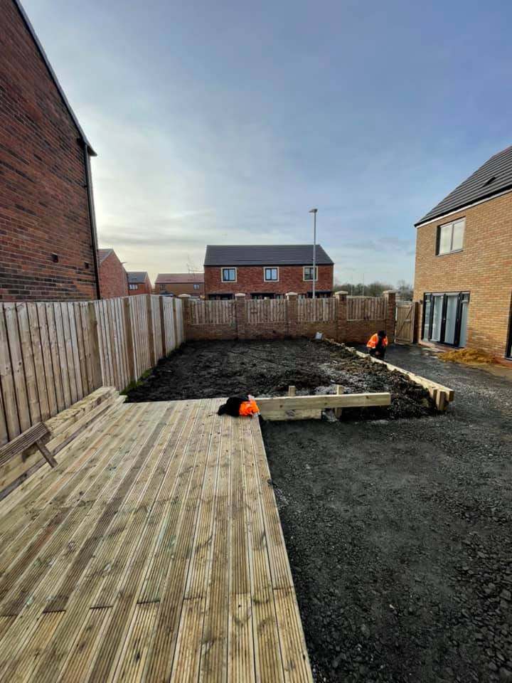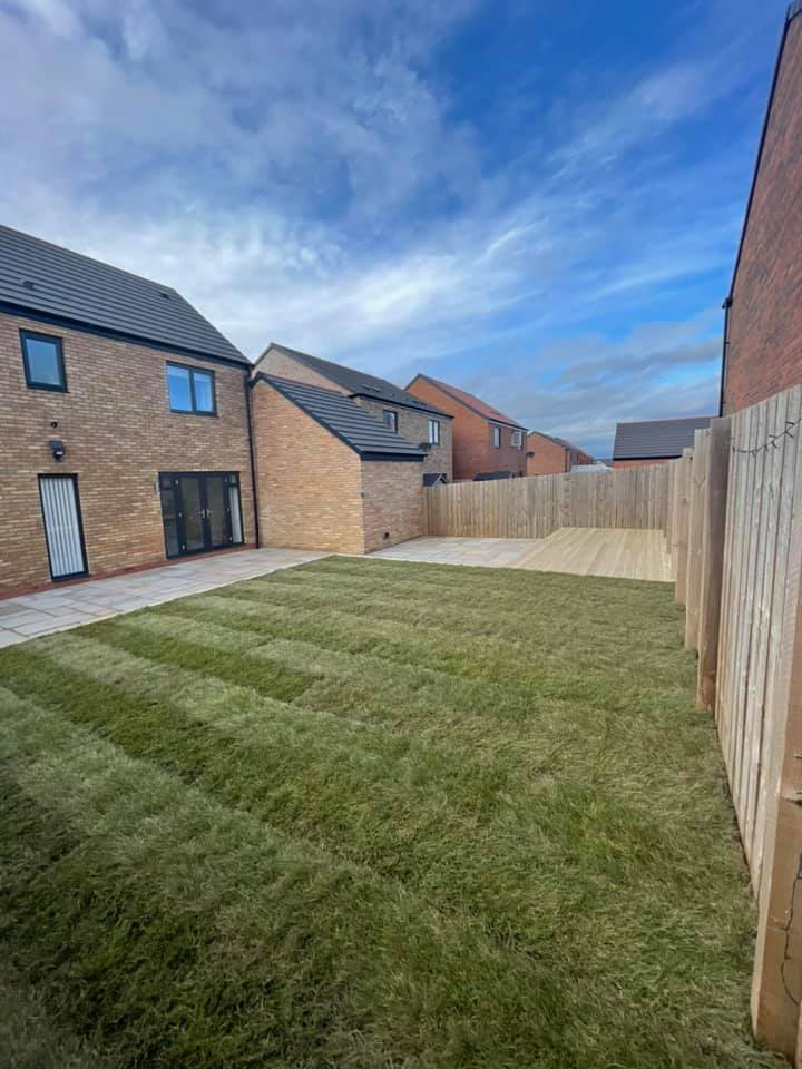Here we have our most recent finished garden transformation, the lads have done excellent battling with the weather constantly! Some lovely sandstone paving, a raised lawn retained by sleepers, with a nice bit of decking in the far corner, all finished to a very high standard, well-done team!